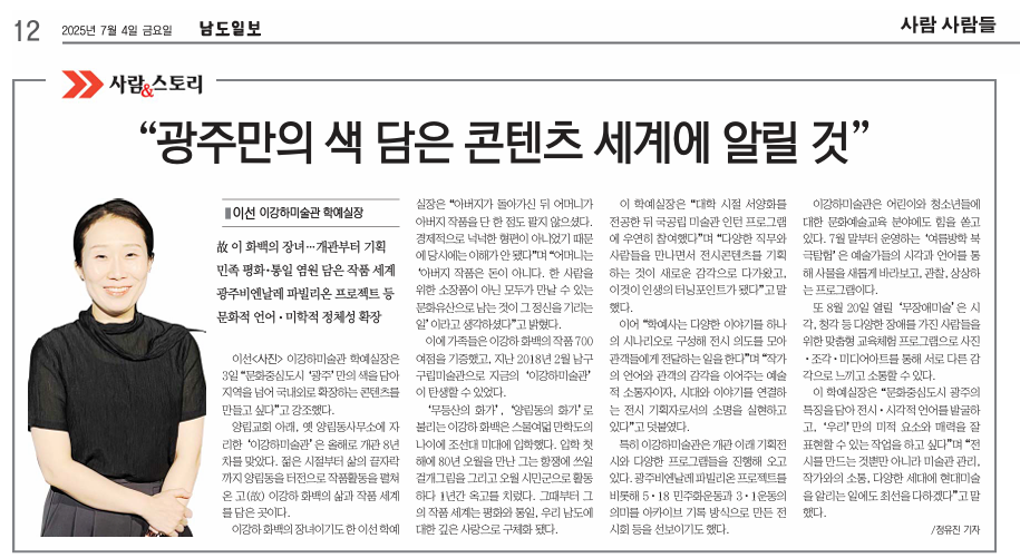 À̼± À̰ÇϹ̼ú°ü Çп¹½ÇÀåÀº 3ÀÏ "¹®ÈÁ߽ɵµ½Ã ¡®±¤ÁÖ¡¯¸¸ÀÇ »öÀ» ´ã¾Æ Áö¿ªÀ» ³Ñ¾î ±¹³»¿Ü·Î È®ÀåÇÏ´Â ÄÜÅÙÃ÷¸¦ ¸¸µé°í ½Í´Ù"°í °Á¶Çß´Ù.