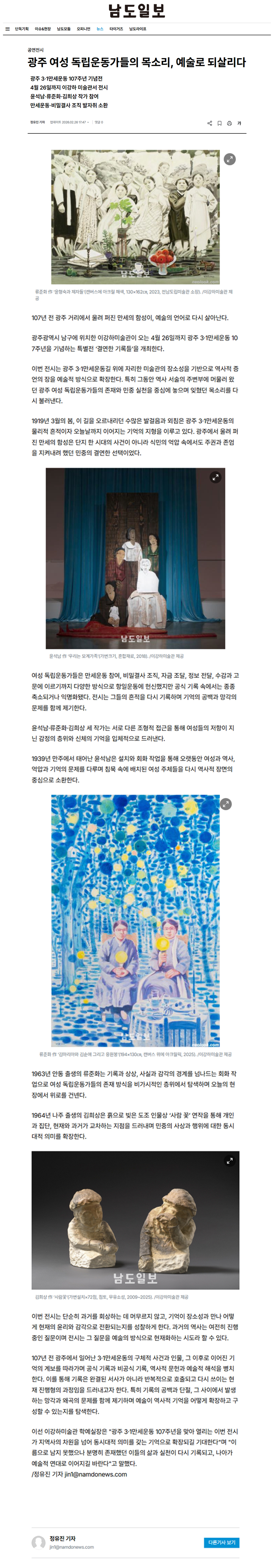 20260226_³²µµÀϺ¸_±¤ÁÖ ¿©¼º µ¶¸³¿îµ¿°¡µéÀÇ ¸ñ¼Ò¸®, ¿¹¼ú·Î µÇ»ì¸®´Ù