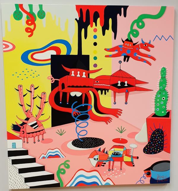 °µ¿È£ ÀÛ°¡ÀÇ ÀÛǰ ¡®ÇÏÀ̺긮µå »çÇÇ¿£½º¡¯ ¿¬ÀÛÀº À¯ÄèÇÏ´Ù. Àΰ£°ú ±â°è, µ¿½Ä¹°ÀÌ ¾î¿ì·¯Áø ȸéÀº ¿Â°® ¼ÒÀçµéÀÌ Á¦¸Ú´ë·Î ¶°µé°í, ¿òÁ÷ÀÌ¸ç ¼ö¸¹Àº À̾߱⸦ ½ñ¾Æ³»´Â »ó»ó·Â ³ÑÄ¡´Â °ø°£ÀÌ¸ç ±× ºÐÀ§±â¸¦ °È½ÃŰ´Â °Ç È·ÁÇϰí ¸ÇÑ »ö°¨µéÀÌ´Ù.