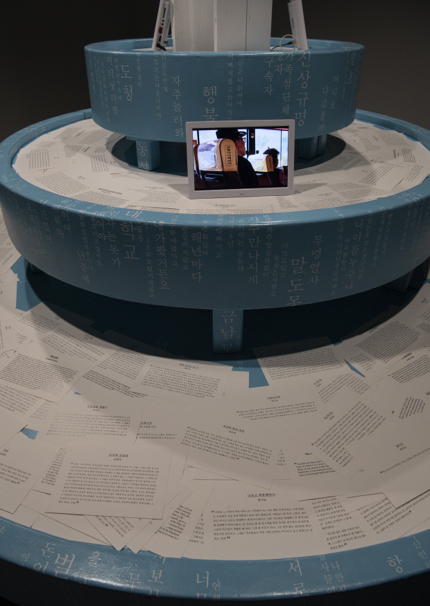 ¡®±¤Àå¿¡¼ ¸¸³ »ç¶÷µé¡¯Àº µµÃ» ¾Õ ºÐ¼ö´ë¸¦ Çü»óÈÇÑ ¼³Ä¡¹°¿¡ 5¿ù °ü·Ã Áõ¾ðµéÀ» ¸ð¾Æ µÐ ÀÛǰÀÌ´Ù. ¡®5¡¤18 ¶§ °¨¿Á¿¡ °¡°¡²¿ ³» ÀÖ´Ù ¿Â ±× »ç¶÷¡¯ÀÇ ¾ÈºÎ¸¦ ¹¯°í, ¡®±¤ÁÖ´Â ÇÑ ³ð ÀâÀ¸¸é µÎ ³ðÀÌ ´ëµå´Â °÷¡¯À̶ó°í À̾߱âÇÏ´Â Áõ¾ðÀÚµéÀÇ ±ÛÀÌ ¹¶Å¬ÇÏ´Ù. ±×¹Û¿¡ »ç¶÷µåÀÇ ¹ß°ÉÀ½À» ÃÔ¿µÇÑ ¿µ»ó ¡®½Ç¸¶¸®¸¦ ã¾Æ¼¡¯µµ ¸¸³¯ ¼ö ÀÖ´Ù.