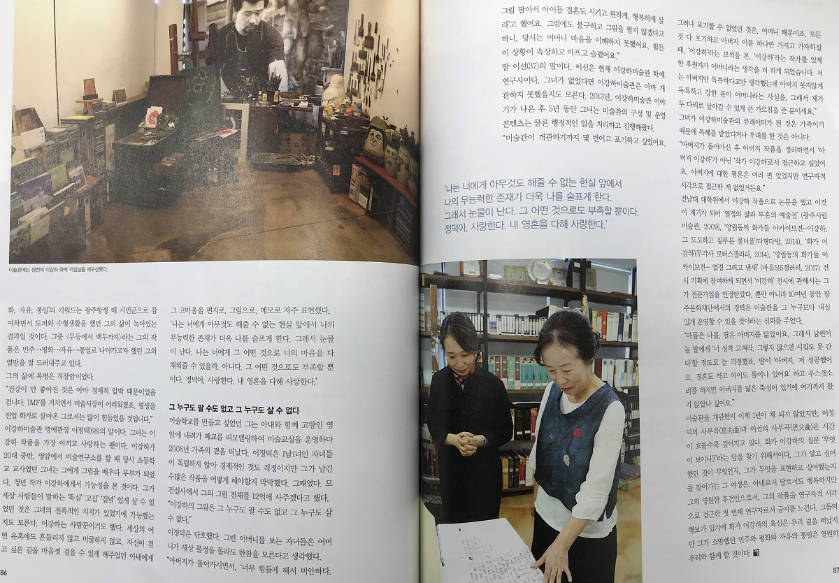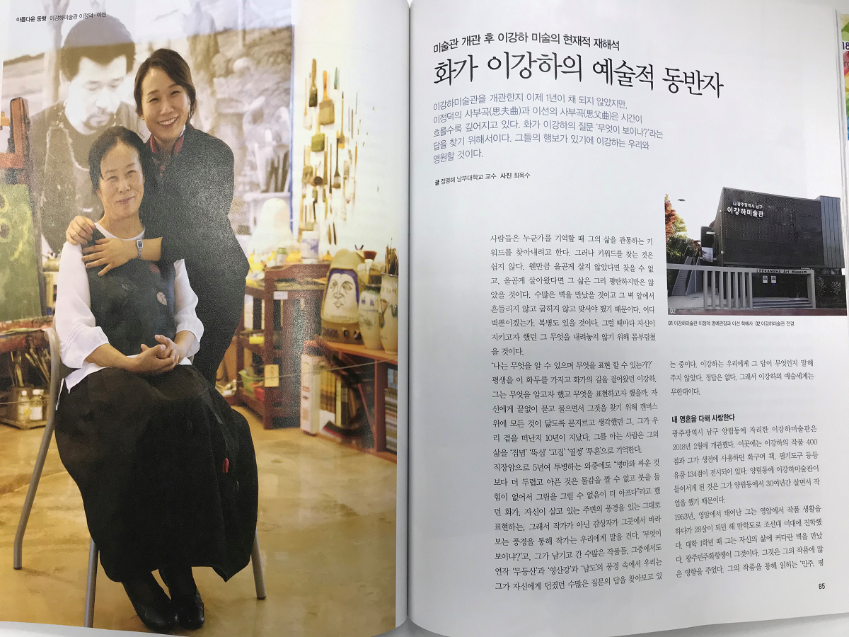 ¾Æ¹öÁö¿¡ ´ëÇÑ Æò·ÐÀº ¿©·¯ Æí ÀÖ¾úÁö¸¸ ¿¬±¸ÀÚÀû½Ã°¢À¸·Î Á¢±ÙÇÑ °Ô ¾ø¾ú°Åµç¿ä. ¡±Àü³²´ë ´ëÇпø¿¡¼ À̰ÇÏ ÀÛǰÀ¸·Î ³í¹®À» 썻°í À̰ÍÀÌ °è±â°¡ µÇ¾î ¡®¿Á¤ÀÇ »î°ú ÅõÈ¥ÀÇ ¿¹¼úÀü¡¯ (±¤Áֽø³ ¹Ì¼ú°ü,2009), ¡®¾ç¸²µ¿ÀÇ È°¡µé ¾ÆÄ«À̺êÀü-À̰ÇÏ, ±× µµµµÇϰí £Ǫ¸¥ ¹°³Ê¿ï¡¯(´ÙÇü´Ù¹æ,2014), ¡®È°¡ À̰ÇÏ¡¯(¹«°¢»ç ·ÎÅͽº°¶·¯¸®,2014), ¡®¾ç¸²µ¿ÀÇ È°¡µé ÀÌÄ«À̺êÀü-¿Á¤ ±×¸®°í ³¿»õ¡¯(¸¶À½515°¶·¯¸®,2017) Àü½Ã ±âȹ¿¡ Âü¿©ÇÏ°Ô µÇ¸é¼ ¡®À̰ÇÏ¡¯ Àü½Ã¿¡ °üÇØ¼´Â ±×°¡ Àü¹®°¡ÀÓÀ» ÀÎÁ¤¹Þ¾Ò´Ù. »Ó¸¸ ¾Æ´Ï¶ó 10¿©³â µ¿¾È ±¤ÁÖ¹®ÈÀç´Ü¿¡¼ÀÇ °æ·ÂÀº ¹Ì¼ú°üÀ» ±× ´©±¸º¸´Ù ³»½ÇÀÖ°Ô ¿î¿µÇÒ ¼ö ÀÖÀ» °ÍÀ̶ó´Â ½Å·Ú¸¦ ÁÖ¾ú´Ù.