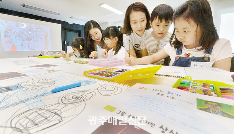 20ÀÏ ¿ÀÀü ±¤ÁÖ ³²±¸ ¾ç¸²µ¿ À̰ÇÏ ¹Ì¼ú°ü¿¡¼ ¹æÇÐÀ» ¸ÂÀº ÃʵîÇлýµéÀ» ´ë»óÀ¸·Î Áö¿ª ÀÛ°¡¿Í ÇÔ²²ÇÏ´Â ¾î¸°ÀÌ ¿¹¼úÇб³°¡ ¿·È´Ù. À̳¯ ÇлýµéÀÌ ¡®±×¸² ¼Ó¿¡ ¼û°ÜÁø »ó»ó¡¯À̶õ ÁÖÁ¦·Î ±×¸²À» ±×¸®°í ÀÖ´Ù.