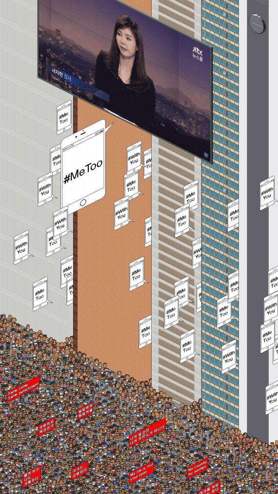 ¼¼¹øÂ° ¼½¼Ç 'Á¾¸»µé'¿¡ Àü½ÃµÈ ¼±¿ìÈÆÀÇ 'Æò¸éÀÌ »õ·Î¿î ±íÀÌ´Ù 2018'Àº Áö³ÇØ ¿ì¸®»çȸ¸¦ ¶ß°Ì°Ô ´Þ±É´ø Áýȸ ¹®È¿Í ¹ÌÅõ µî ¿©·¯ »ç°ÇµéÀ» ¾ÆÀÌÆù°ú °°Àº Æò¸é¿¡ Çȼ¿ ±×·¡ÇÈÀ¸·Î Ç¥ÇöÇØ ´«±æÀ» ²ø¾ú´Ù. °¢°¢ÀÇ »çȸ À̽´¿¡ ÇØ½Ãű׳ª SNS·Î ¹ÝÀÀÇÏ´Â ´ëÁßÀÇ ¸ð½ÀÀ» ÅëÇØ µðÁöÅÐ Ä¿¹Â´ÏÄÉÀ̼ǰú Æ÷½ºÆ® ÀÎÅÍ³Ý È¯°æÀÇ ¿µÇâ·ÂÀ» Ç¥ÇöÇß´Ù.