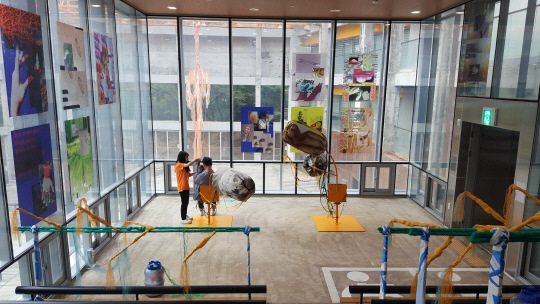 Ÿ¸®Å© Ű½º¿Ï¼ÕÀº ¾î¸°À̵éÀ» ¸ðƼºê·Î Á¶°¢ÇÑ <ź»ý>°ú <¸ÁÀÚ>À» °¢°¢ 1Ãþ°ú 3Ãþ¿¡ ¹èÄ¡ÇÏ¿´´Ù. 3Ãþ¿¡¼´Â ½ÖµÕÀÌ ¾î¸°À̵éÀÇ ÆÛÆ÷¸Õ½º¸¦ ÀçÆíÁýÇÑ ¿µ»óµµ ÇÔ²² °¨»óÇÒ ¼ö ÀÖ´Ù. Àü½ÃÀå ÀÔ±¸¿¡¼ ½ÃÀÛµÈ ¿ì¿¤º¤ÀÇ ÀÛǰµµ °Ç¹° ³»º®°ú 3Ãþ¿¡¼ Á¶¿ìÇÒ ¼ö ÀÖ´Ù. 2Ãþ°ú 3Ãþ¿¡ ¿Ã¶ó¼¸é ·çÀÌÁî »ç¸£Å丣(Louise Sartor), º£¸£´Ù¸£°Ô & ÆäÁãÀÇ ÀÛǰµµ Àü½Ã °ø°£À» ÀÚÀ¯·Ó°Ô ³Ñ³ªµé°í ÀÖ´Ù.