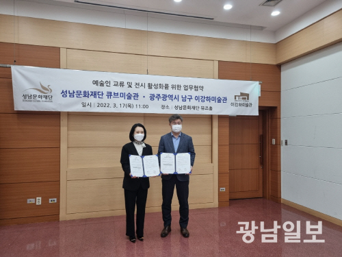 ±¤ÁÖ ³²±¸ ±¸¸³ À̰ÇϹ̼ú°ü(1Á¾ °ø¸³¹Ì¼ú°ü)°ú ¼º³²¹®ÈÀç´ÜÀÌ »õ·Î¿î µµ½ÃÀÇ ±³·ù¿Í ¿¬°áÀ̶ó´Â ÁÖÁ¦·Î Áö¿ª ¹®È¿¹¼ú ¹ßÀü°ú ¿¹¼ú°¡ ±³·ù Àü½Ã ¹× Áö¿øÀ» À§ÇØ Áö³ 17ÀÏ ¼º³²¾ÆÆ®¼¾ÅÍ¿¡¼ ·ù¼º±Ù ¿¹¼ú±¹Àå°ú ±¤ÁÖ±¤¿ª½Ã ³²±¸ À̰ÇϹ̼ú°ü À̼± Çп¹½ÇÀå µîÀÌ Âü¼®ÇÑ °¡¿îµ¥ Çù¾à½ÄÀ» ÁøÇàÇß´Ù°í 20ÀÏ ¹àÇû´Ù.