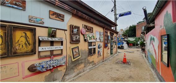 ¸¶À»ÀÇ ÃÌÀåÀÌ ¾ÕÀå¼¼ ¸¶À» Áֹΰú ÇÔ²² ºóÁýÀ» ±ú²ýÀÌ Ä¡¿ì°í Ç׾Ƹ®, °íÀå ³ º®½Ã°è, ¾×ÀÚ µî ¹ö·ÁÁø ¹°°ÇÀ» °¡Á®¿Í °ñ¸ñ±æ º®¸é¿¡ Àü½ÃÇϸ鼺ÎÅÍ, ¿À·¡µÈ ³°Àº °ÍÀÌ ¿ÀÈ÷·Á ÀÛǰÀÌ µÅ ¡®°ñ¸ñ±æ °¶·¯¸®¡¯·Î ´Ù½Ã ž ÇÏ·çÇÏ·ç°¡ ±ú²ýÇØÁ³´Ù°í ÇÑ´Ù.