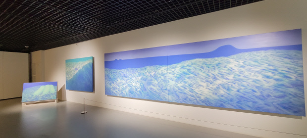 Áö³ÇØ ¿©¼ö Àåµµ ·¹Áö´ø½º¿¡ ¸Ó¹°·¶´ø Á¤À¯¹Ì ÀÛ°¡´Â ´ç½Ã ¸¶À½ ¼Ó¿¡ ¿À·¡ ³²¾Ò´ø ¡®¹Ù´Ù¡¯ÀÇ À̹ÌÁö¸¦ ´ëÇü È¸È ÀÛǰÀ¸·Î Ç®¾î³Â´Ù. ÈçÈ÷ Ç¥ÇöµÇ´Â ¹Ù´ÙÀÇ ÆÄµµ¿Í ¹°°á ´ë½Å, ¹Ù´å¼Ó Àå¸éó·³ º¸À̸鼵µ ¸¶Ä¡ ¹Ù¶÷ÀÌ ºÎ´Â µéÆÇÀÇ ´À³¦µµ ÀüÇØÁö´Â ¡®Àá½Ã ½¬¾î°¡´Â ´ç½Å¿¡°Ô¡¯ ¿¬ÀÛ µîÀÌ ´«±æÀ» ²ö´Ù.