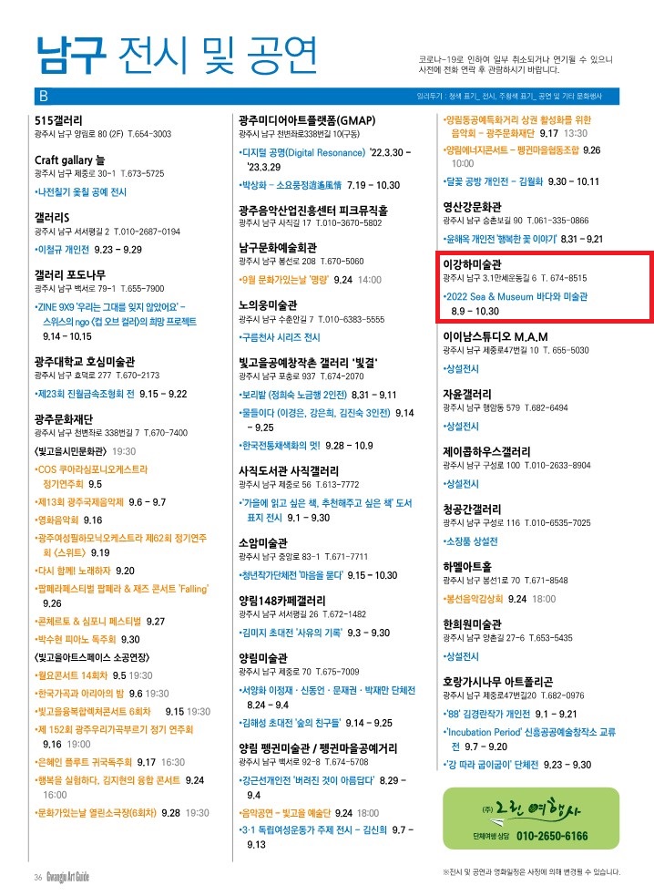 ±¤ÁÖ±¤¿ª½Ã ³²±¸ À̰ÇϹ̼ú°ü Àü½ÃÀÏÁ¤¼Ò°³°¡ ±¤ÁÖ¾ÆÆ®°¡À̵å 9¿ùÈ£¿¡ µîÀçµÇ¾ú½À´Ï´Ù.