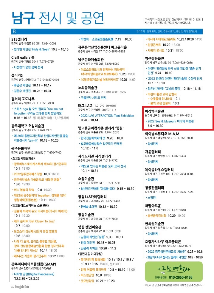 ±¤ÁÖ±¤¿ª½Ã ³²±¸ À̰ÇϹ̼ú°ü Àü½ÃÀÏÁ¤¼Ò°³°¡ ±¤ÁÖ¾ÆÆ®°¡À̵å 10¿ùÈ£¿¡ µîÀçµÇ¾ú½À´Ï´Ù.