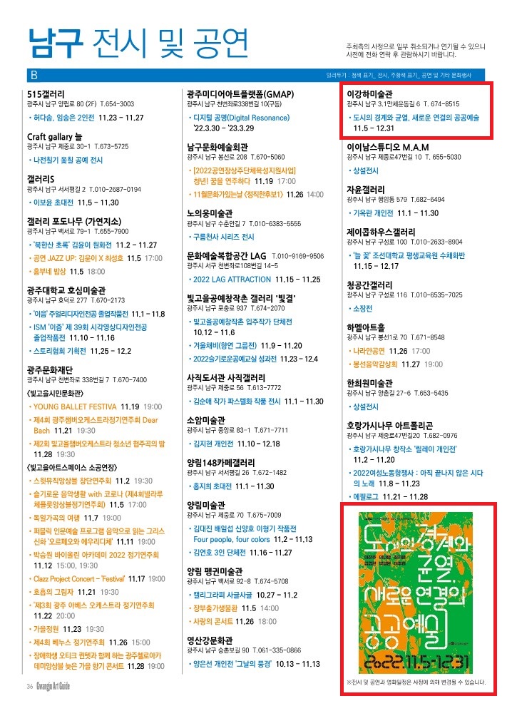 ±¤ÁÖ±¤¿ª½Ã ³²±¸ À̰ÇϹ̼ú°ü Àü½ÃÀÏÁ¤¼Ò°³°¡ ±¤ÁÖ¾ÆÆ®°¡À̵å 11¿ùÈ£¿¡ µîÀçµÇ¾ú½À´Ï´Ù.