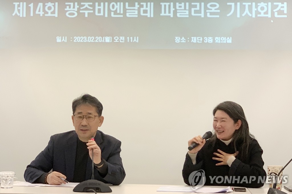(±¤ÁÖ=¿¬ÇÕ´º½º) À徯¸§ ±âÀÚ = Áö³ 20ÀÏ ±¤ÁÖ ºÏ±¸ ±¤ÁÖºñ¿£³¯·¹Àç´Ü¿¡¼ ¿¸° Á¦14ȸ ±¤ÁÖºñ¿£³¯·¹ ÆÄºô¸®¿Â ±âÀÚȸ°ß¿¡¼ ¹Ú¾ç¿ì ´ëÇ¥ÀÌ»ç(¿ÞÂÊ)¿Í ±èÁö¿¬ Àü½ÃºÎÀåÀÌ ÆÄºô¸®¿Â ÇÁ·ÎÁ§Æ®¿¡ ´ëÇØ ¼³¸íÇϰí ÀÖ´Ù. 2023.2.21 areum@yna.co.kr